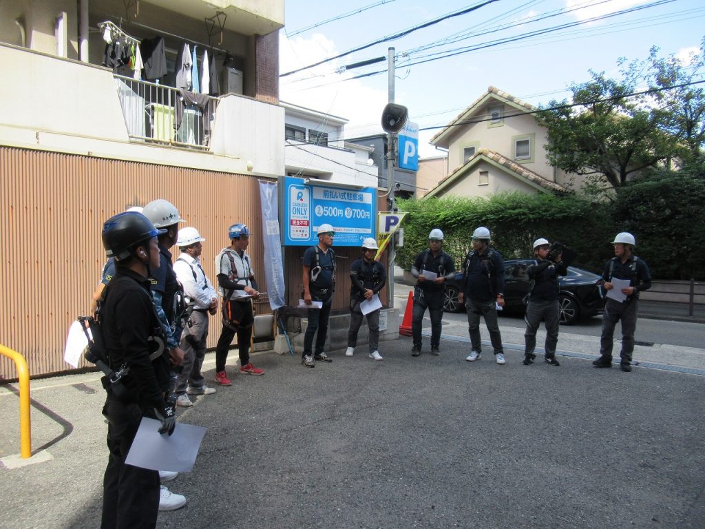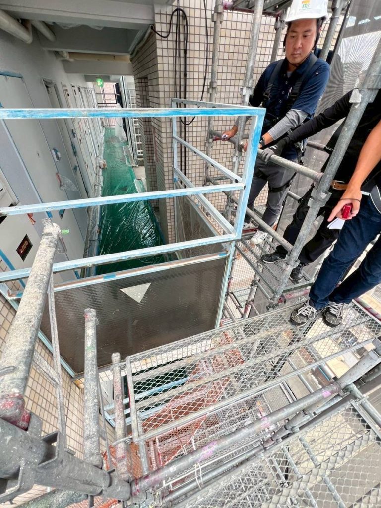 足場業者2名と共に安全パトロールを実施しました。