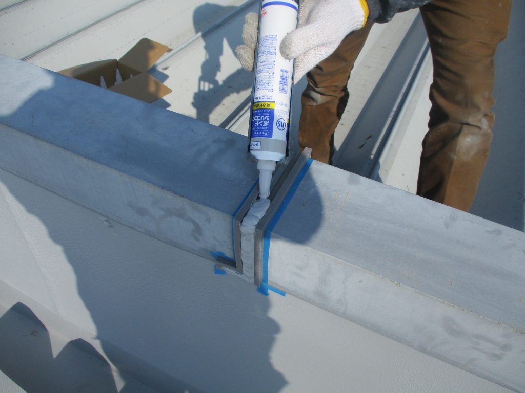 笠木のジョイント部もしっかりブリッジシーリングです。
